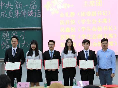 接下来,主持人公布了2017-2018年365英国上市公司团学优秀部门名单,陈宇为优秀部门颁发荣誉证书,以兹鼓励。紧接着是团学各部门介绍的环节,借此机会,同学们对团学部门的情况有了更为深入的了解。在为2018届主席团成员以及各部门正副部长颁发聘书后,以习近平集体谈话内容为题目的知识竞赛使得现场的气氛更为热烈,学术部在此竞赛中一举夺魁。