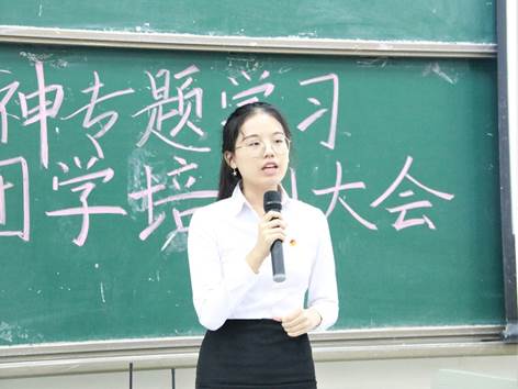 在庄严的宣誓环节后,外联部部长张宁静进行了关于礼仪风貌的培训。她从“着装礼仪”“姿态礼仪”“谈吐礼仪”等方面深入浅出地给同学们上了一节有益的礼仪课,使得同学们在礼仪方面受益匪浅。