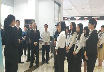 随后,师生们在法院工作人员的带领下,参观了法院内部。首先,法院工作人员带领师生们参观了立案大厅,介绍了网上立案和撰写网上法律文书的便利性,并参观了诉讼服务中心。接着,师生们参观了民事调解室和知识产权调解室,进一步认识调解程序。随后,在监控中心观看了介绍广东自由贸易区南沙区片区人民法院的主要职能及工作特色的视频,了解了法院的商事多元调解平台。