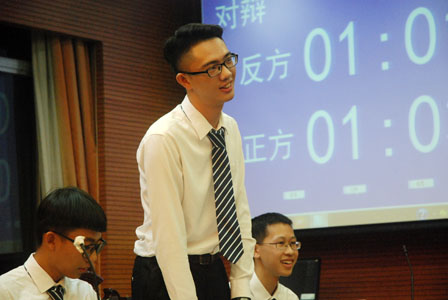 接下来是精彩的对辩环节。正方三辩问反方二辩,“在朋友圈分享碎片的东西如何让父母管中窥豹?”反方二辩冷静对答,朋友圈是生活的一小部分,正是其开放能让父母看到成长的自己。在攻辩小结中,双方重申和高度总结了各自的观点。