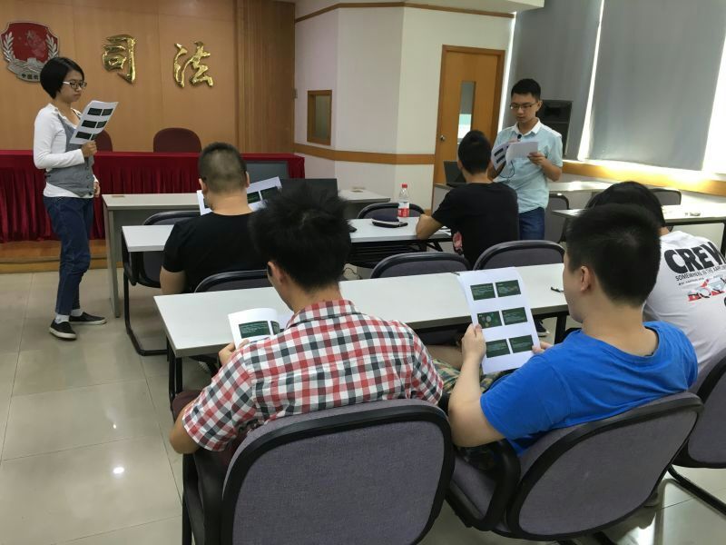 下午两点整,由法援另一批志愿者提供的社区矫正授课开始了。志愿者先通过犯罪的构成要件来逐步分析交通肇事罪和危险驾驶罪的刑法概念,再分别播放了关于交通肇事罪和危险驾驶罪的相应视频,让学员发表自己对视频的看法,引发学员积极思考相关的法律问题。随后,志愿者还向学员全面剖析了罪与罪之间的区别。最后,学员们以分析复习案例的形式重温了课堂内容。