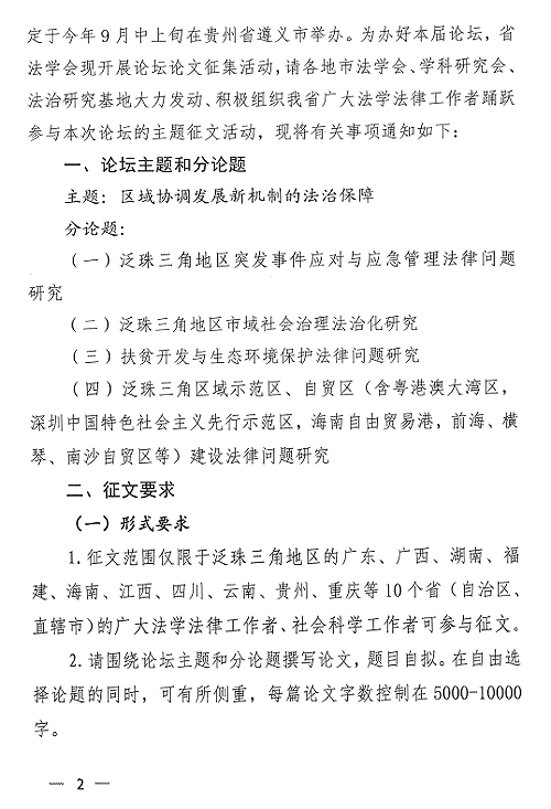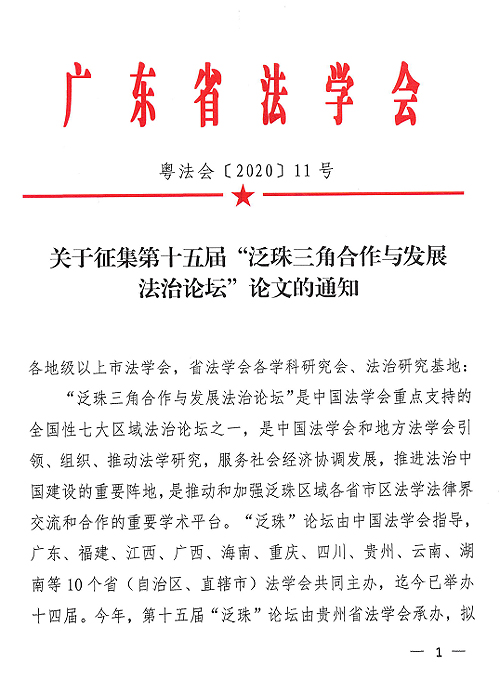 广东省法学会征集第十五届“泛珠三角合作与发展法治论坛”论文