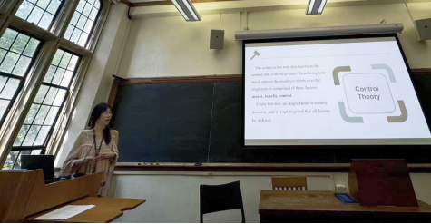 在Frederick Raudat教授的课堂上,同学们结合各自的学习研究方向和心得相互交流探讨。其中郭柯扬同学以网约车平台uber为例,介绍了网约车平台和司机的法律关系判定,对比分析了顺风车、代驾两种服务模式中的法律调整模式,向同学们介绍了美国法律中的就业关系的二分法的同时,与中国法适用“从属性”的判断标准进行对比,促进了来自不同国家和文化背景的员工之间的学术交流和理解,激发了大家对不同地区法律的兴趣和探索。