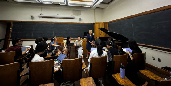 读万卷书有如行万里路。耶鲁大学拥有美国排名第一、全球排名第二的大学图书馆,藏书1100万册。Susan Reid教授带领同学们参观耶鲁大学图书馆,并详细地向同学们介绍图书馆各个楼层的寻书指引及网上文献检索方法。同学们充分利用耶鲁大学丰富的资源,在课余时间借阅书籍及查阅文献学习。