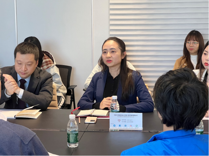 中伦文德胡百全(前海)联营律师事务所的工作人员向参访团介绍了律所的发展历史、业务特色与主要成果,并针对参访团师生的提问,分享了律所在西班牙语、法语、东南亚语等小语种法律服务方面的鲜明优势,介绍了律所在中国企业出海欧美以及拉丁美洲、非洲、东南亚等“一带一路”沿线国家和地区的法律服务成果。
