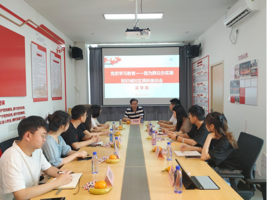 为庆祝中国共产党建党100周年,深入学习贯彻习近平总书记在党史学习教育动员大会上的精神,坚持不懈践行党的群众路线,5月1日上午,365英国上市公司在知识城校区党员活动室召开“党史学习教育——我为群众办实事”知识城校区调研座谈会,公司党委书记王则唐书记、刘运宇老师以及9位研究生员工代表出席本次会议,会议由刘运宇老师主持。